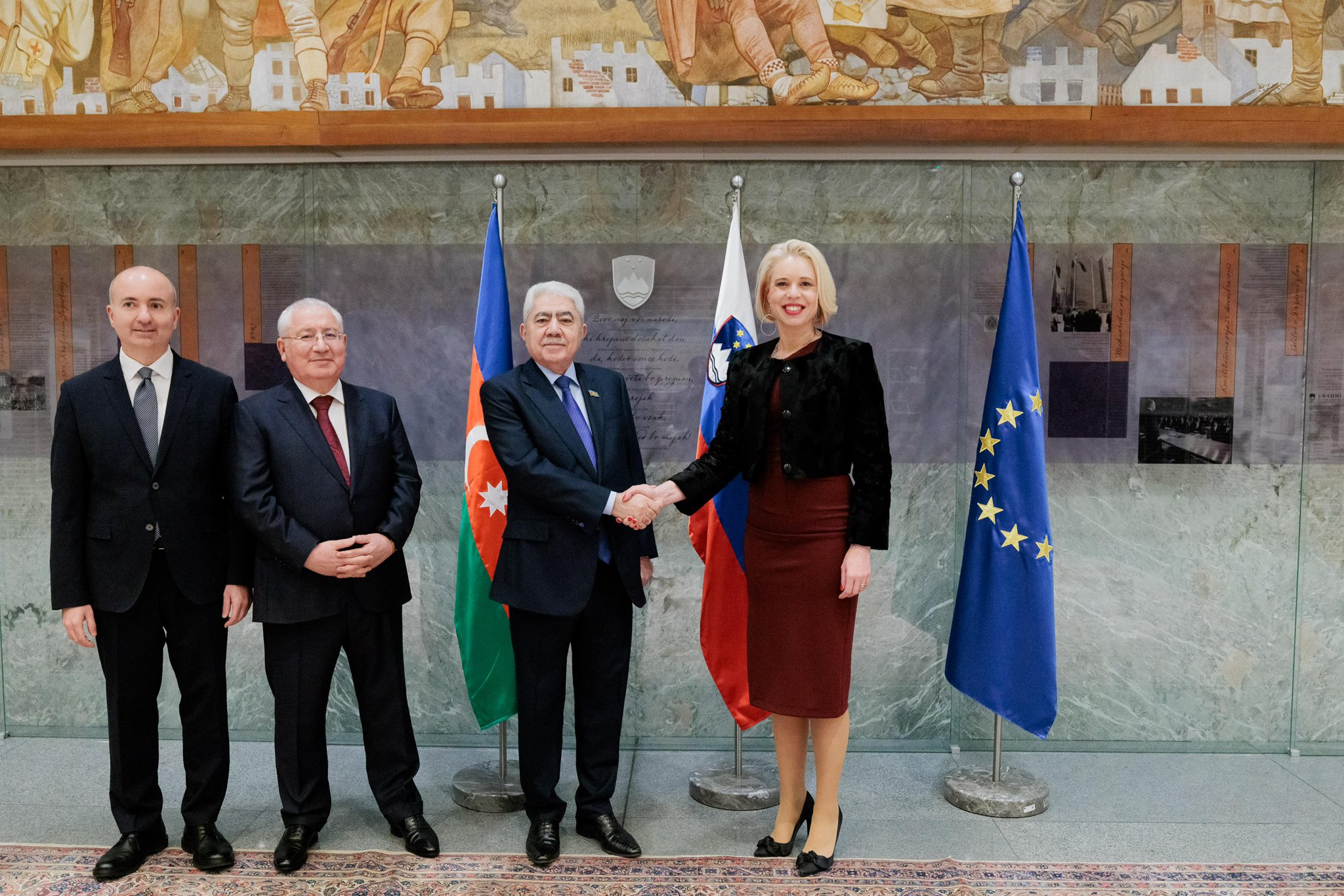Within the framework of the visit, the parliamentary delegation of Azerbaijan held meetings with Ms. Urška Klakočar Zupančič, president of the National Assembly of the Republic of Slovenia, Ms. Tanja Fajon Deputy Prime Minister, Minister of Foreign Affairs of the Republic of Slovenia, Mr. B.Čebela, Chair of the Parliamentary Friendship Group with Azerbaijan at the National Assembly and members of the Friendship Group, Mr. Tomaj Lah, Chair of the Committee on Infrastructure, Environment and Spatial Planning, Mr. Dušan Stojanović, Deputy Chair of the Committee on Foreign Policy.